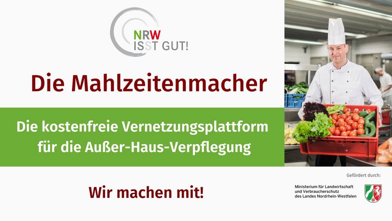 Mit Die Mahlzeitenmacher vom Ernährung-NRW e. V. steht seit Sommer 2025 eine digitale Plattform zur Verfügung, die (bio-)regionale Erzeuger und Produzenten, Verarbeiter und Logistikunternehmen vernetzt.